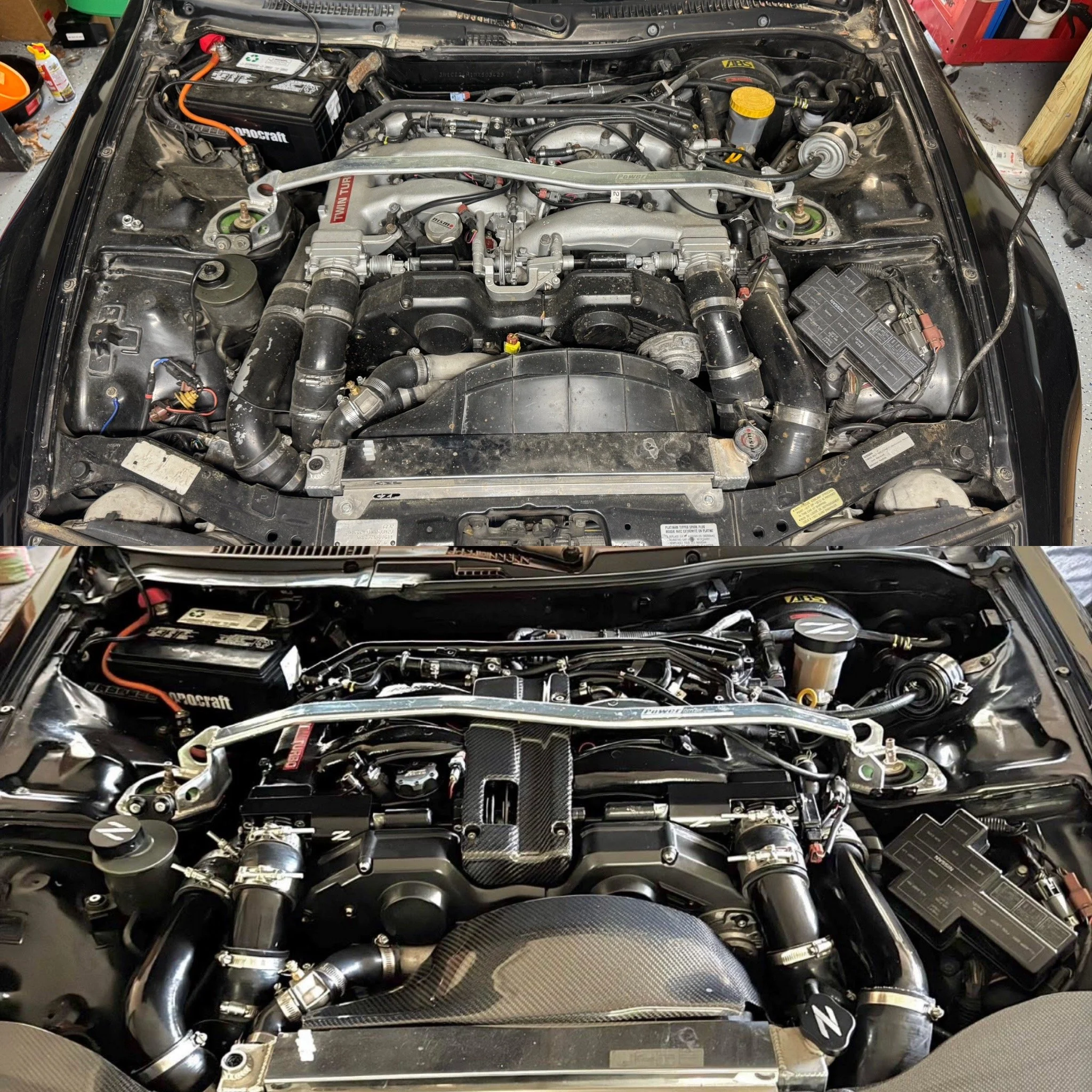 This car came to me exactly how you see it in the top photo; non-running, plenum missing, along with a bunch of hoses and leaks everywhere. The car received a complete overhaul to include new injectors, resealed valve covers, new hoses and lines, and some much needed detailing. The car came on a trailer and left under it’s own power.